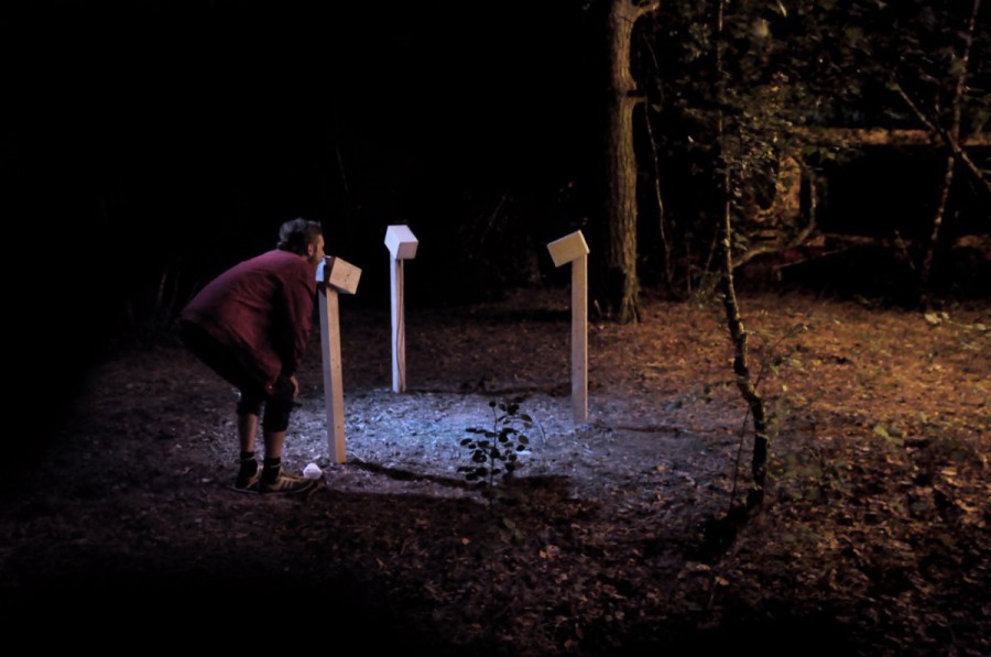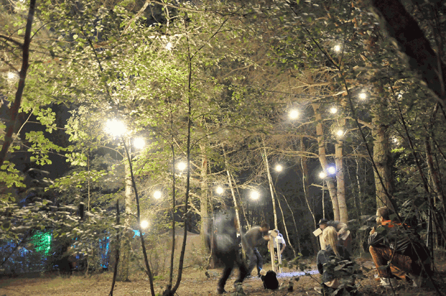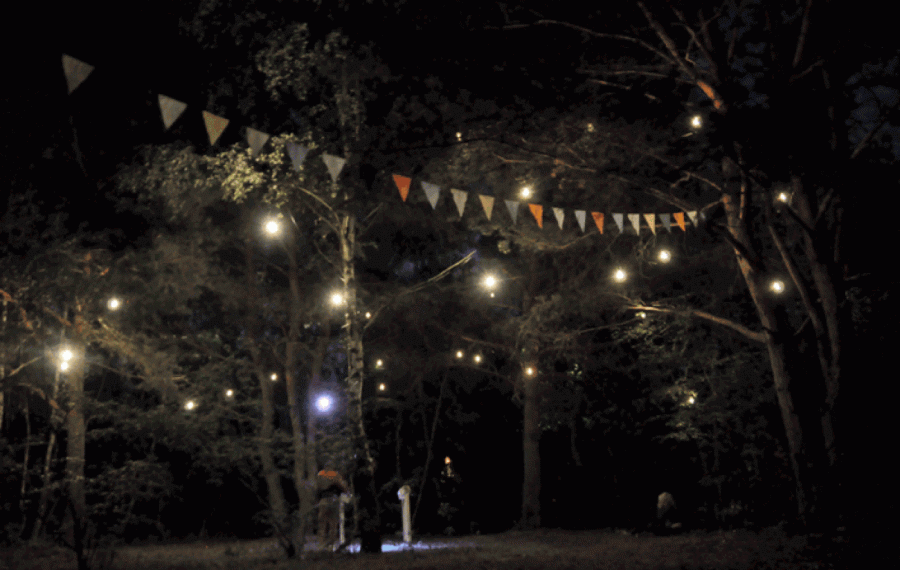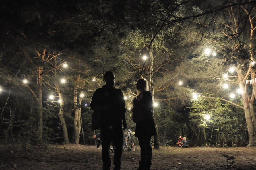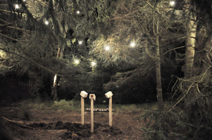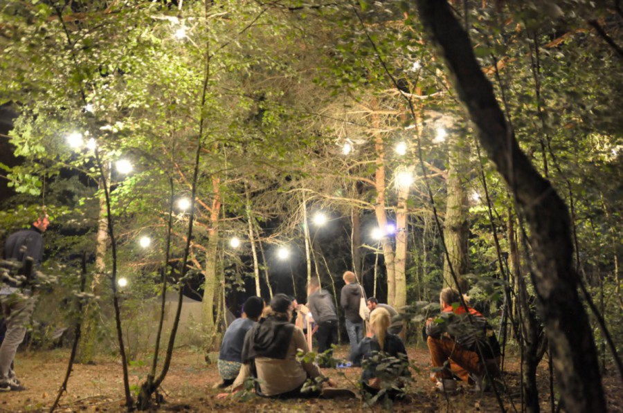 Thirty light bulbs, placed in the trees could be activated by noise — either by the mesmerizing sounds of the surrounding festival events or by lovely visitors. Microphones, held by a wooden base, recorded the sound the environments and the participants contributed. This sound then was converted into electric power to light the bulbs.
