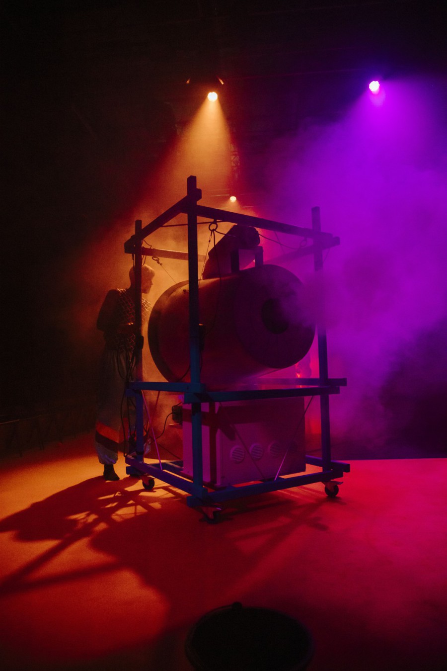 The transnational, Hamburg based ensemble Hajusom joined artistic forces with the immersion focussed performance collective JAJAJA: With their production Jump into the Void they invited their audiences to join a transitional show for experimenting with and celebrating the solidarity. Together with the audience, they enter an almost dystopian, cold and lonesome environment, a so called liminal space which soon transforms into a multifunctional stage for experimental acrobatics.