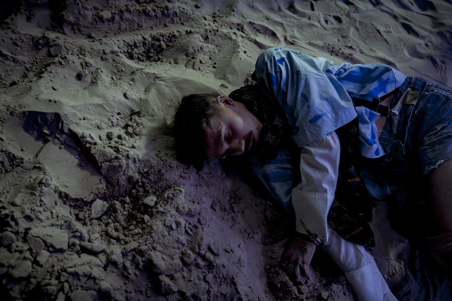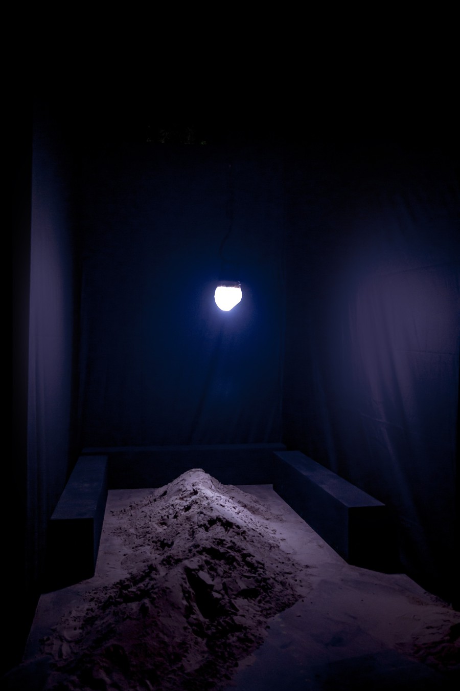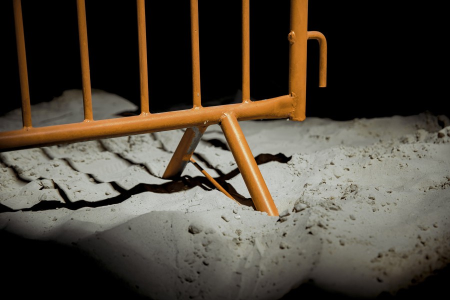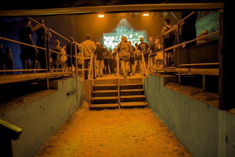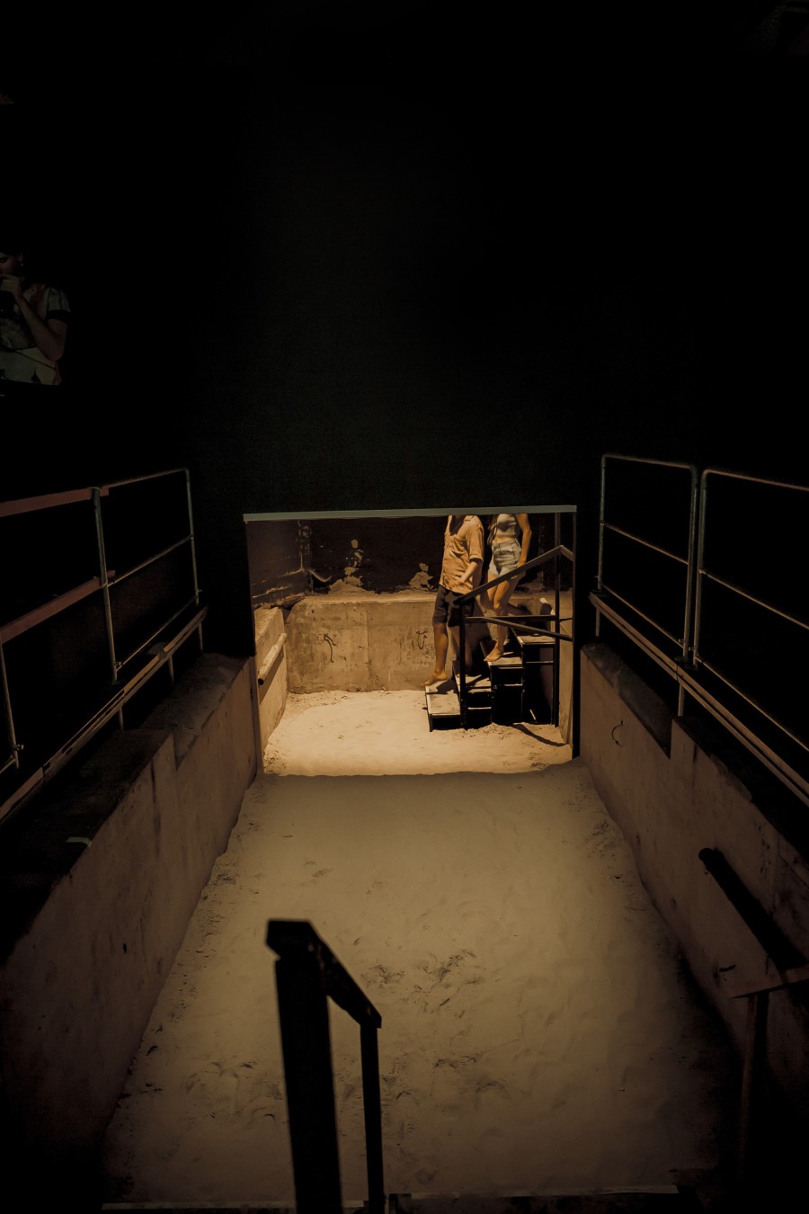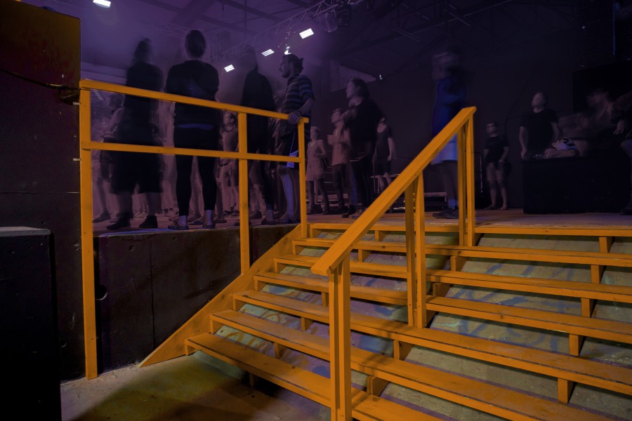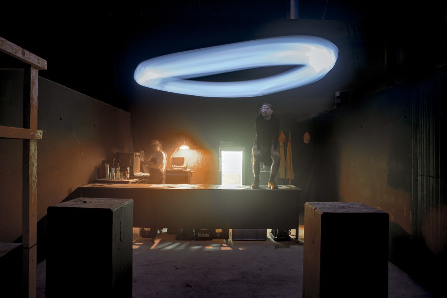 We answer these questions in snapshots of entrances as spatio-temporal thresholds: the entrance to the stage is from below - an instantaneous rising from the depths; the bar is set into a hole whose surrounding walls seem borderless. These central thresholds are accompanied by installations in which time oscillates between acceleration and corrosion.