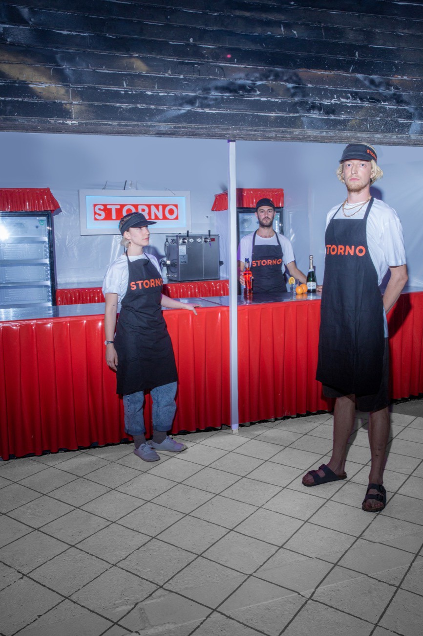 Inside the space one was confronted with numerous floating references that made STORNO into an adventurous and witty referential system to experience the festivals program. All accompanied by our STORNO staff serving only the best drinks — and some real fake supermarket flair.